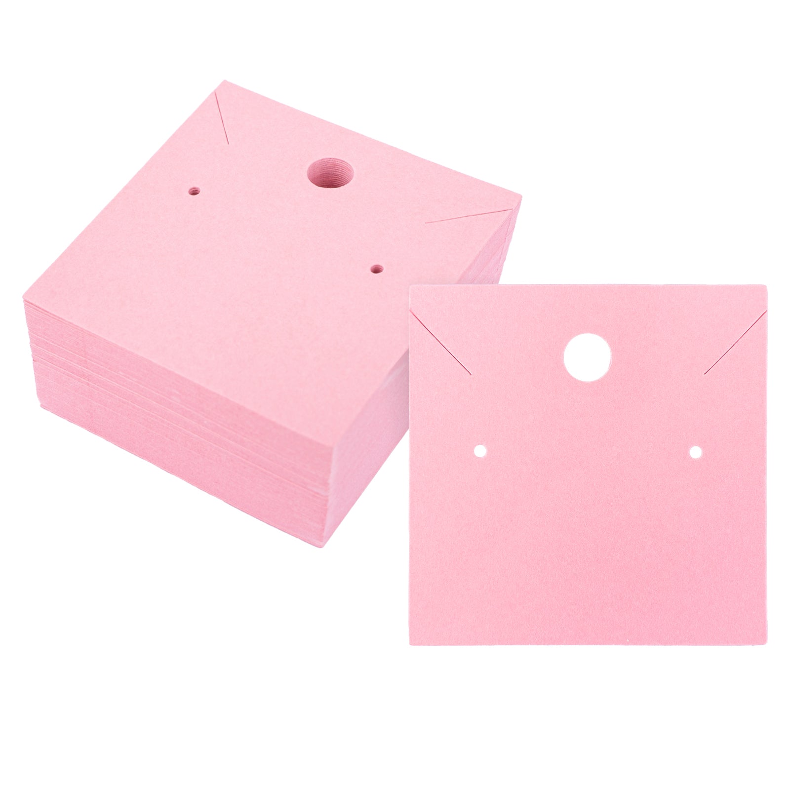 joycraft 100Pcs Earring Display Cards – 2.36In Pink Square Necklace Display Cards, Earring Kraft Paper Holder Cards for Handmade Jewelry, Small Business, Craft Fair, Retail Display