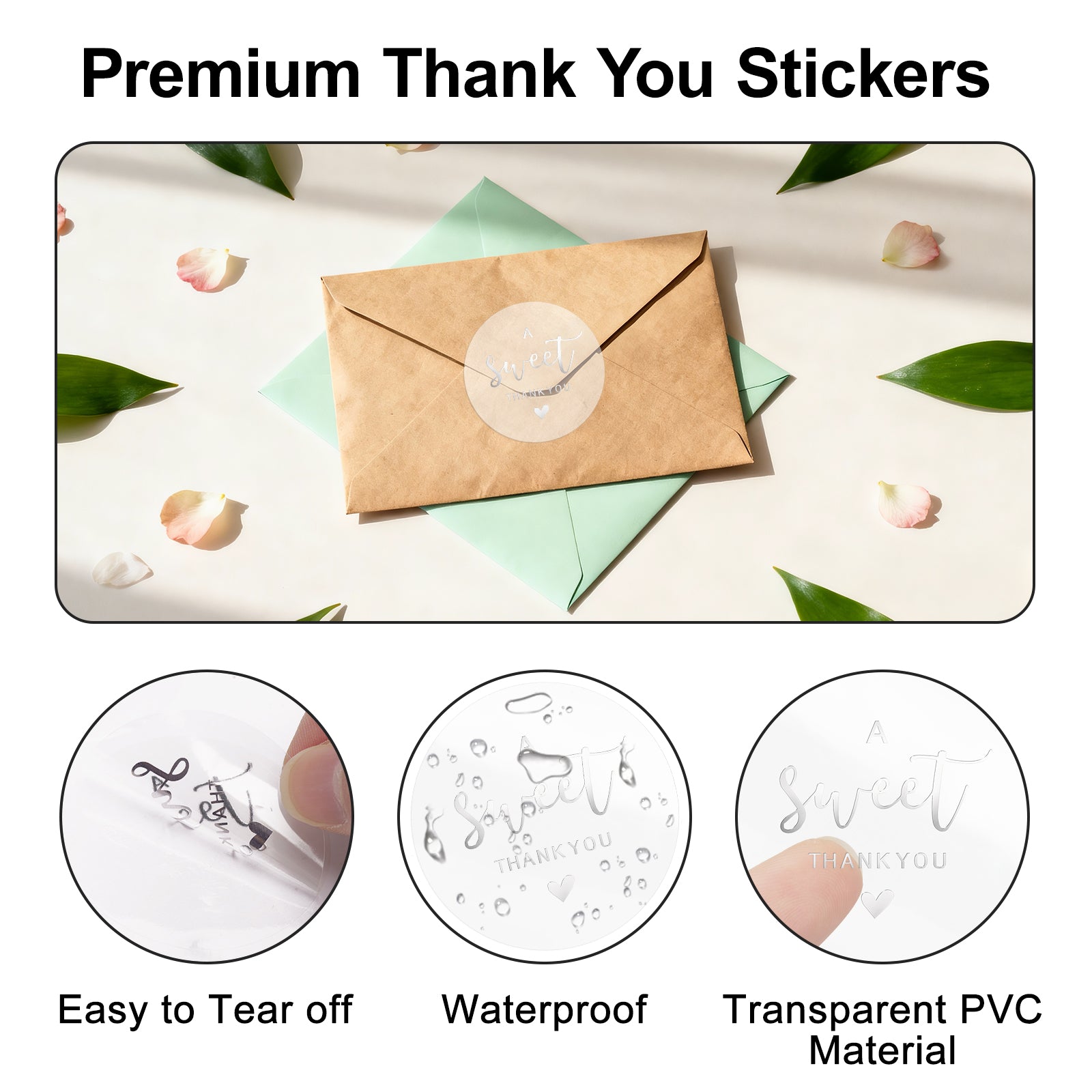 [Premium Clear Gift Stickes] - The clear thank you stickers are made of transparent high-quality PET materials with strong adhesion. These transparent sweet thank you stickers can be firmly pasted on items and are not easy to fall off. When they are torn off, no glue will be left to damage the items. They are easy to paste and remove. The gift wrapping stickers are sturdy and waterproof and suitable for use in a variety of occasions