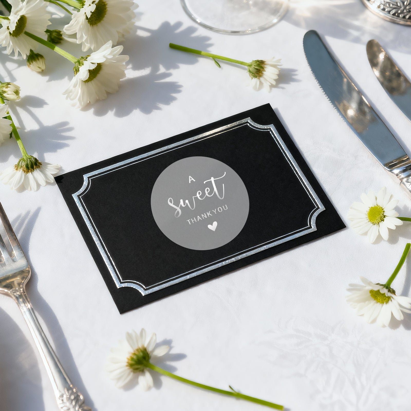joycraft 2 Inch Sweet Thank You Stickers, 120Pcs Thank You Party Favor Labels Stickers, Clear Silver Envelope Seals, Round Gift Sticker for Bags, DIY Craft, Small Business