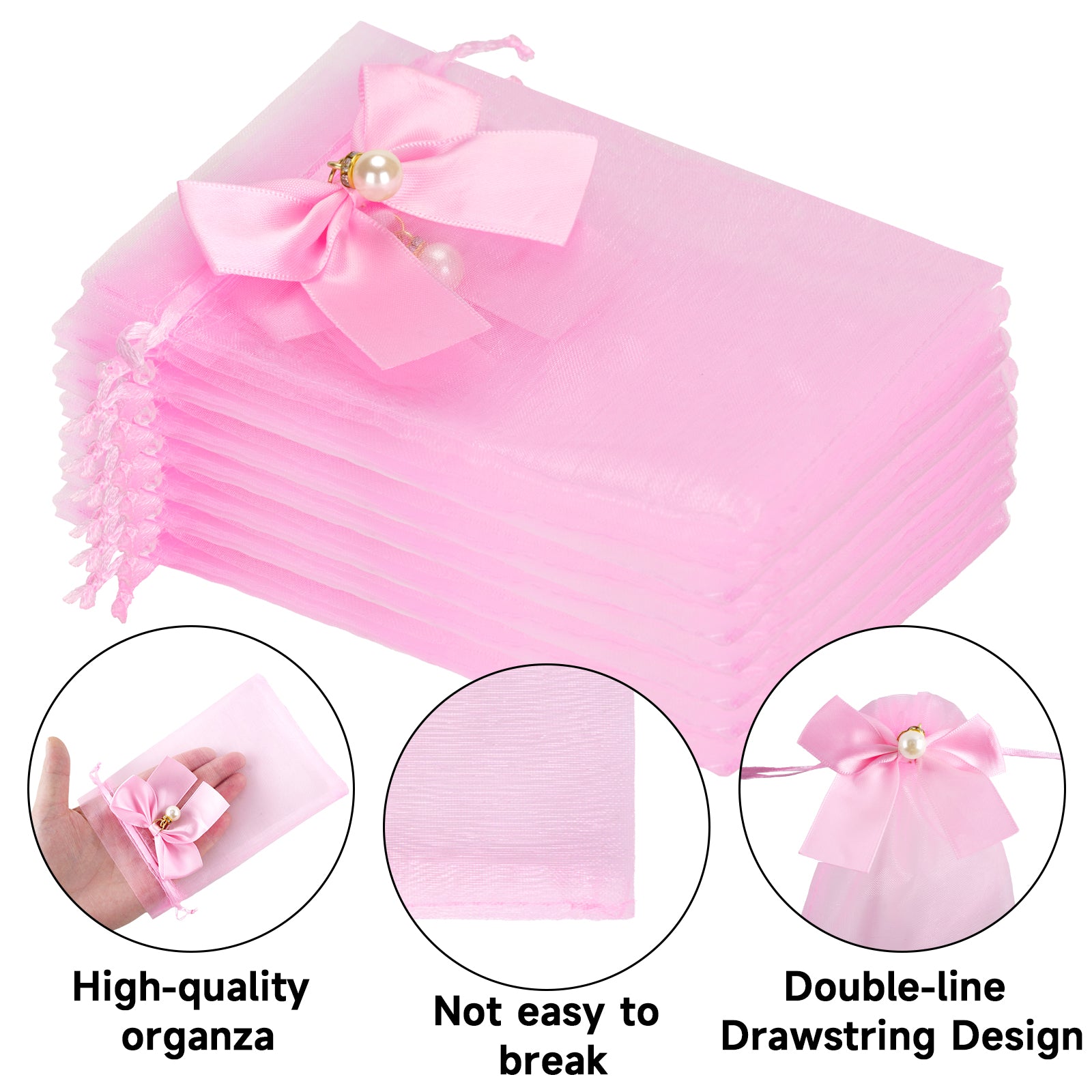 [Pink Organza Bags with Bow] - Bows and pearls are added as decoration on this pink organza bag to make ordinary small gift bags more delicate and beautiful. These bow drawstring bags make your party favors more exquisite. Premium mesh gift bags are suitable for all kinds of themed party, Valentine's Day Date, wedding party favors, event organizers, tea parties and so on.