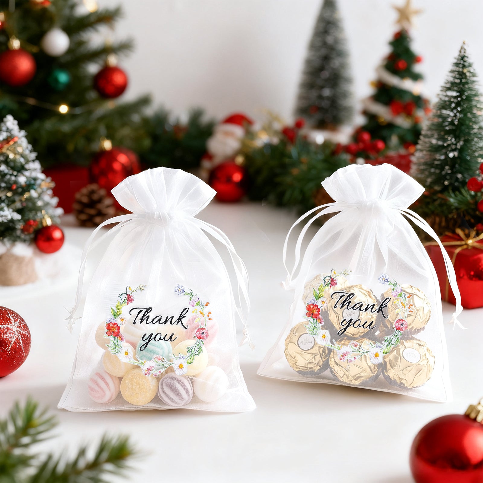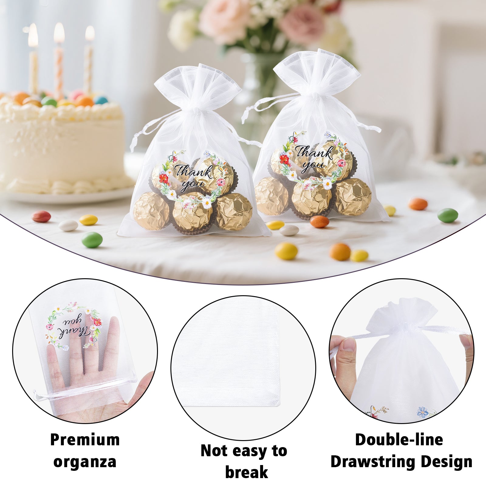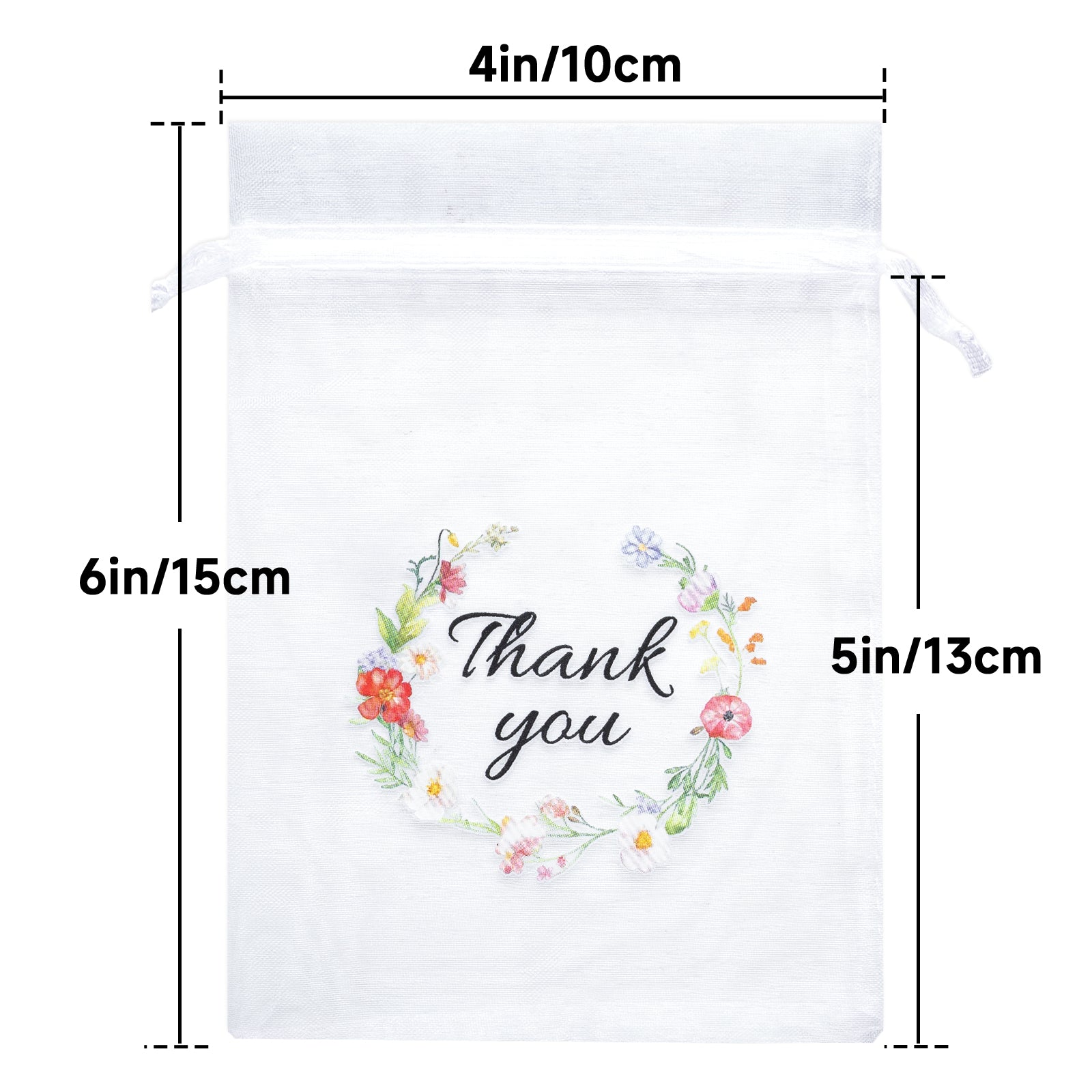 joycraft 4x6 In Thank You Organza Bags - 30Pcs Floral Drawstring Mesh Gift Bags, White Organza Party Favor Pouch for Wedding, Birthday, Baby Shower, Thanksgiving